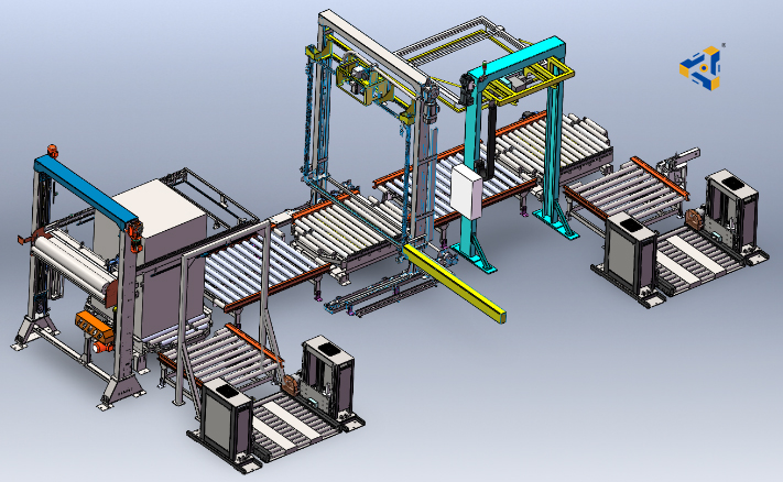 解決方案:根據(jù)客戶的包裝要求和生產(chǎn)節(jié)拍,為客戶提供自動(dòng)化后道包裝線,增加了上下料提升機(jī),輸送旋轉(zhuǎn)臺(tái),覆膜纏繞一體機(jī),水平和垂直打帶機(jī)和在線自動(dòng)貼標(biāo)機(jī),上下料提升機(jī)對(duì)接客戶AGV系統(tǒng),在托盤(pán)上線通過(guò)掃碼設(shè)備將產(chǎn)品信息發(fā)送給客戶MES系統(tǒng),MES系統(tǒng)匹配好相應(yīng)的產(chǎn)品標(biāo)簽并下達(dá)指令給自動(dòng)貼標(biāo)機(jī),在包裝線后端實(shí)現(xiàn)自動(dòng)在線貼標(biāo),整個(gè)過(guò)程實(shí)現(xiàn)無(wú)人自動(dòng)化作業(yè)。